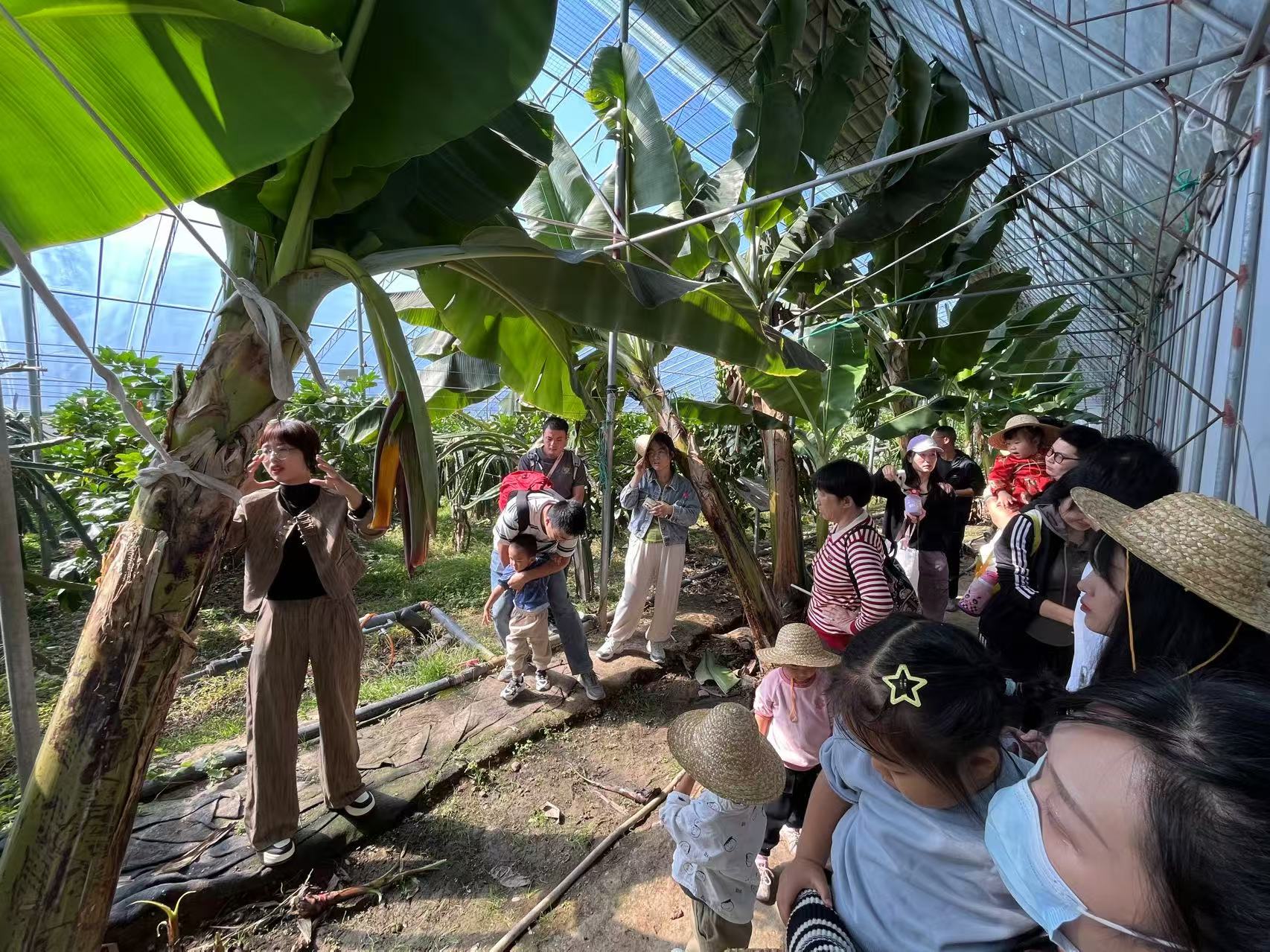 在方山脚下的归源山庄,一场“南方水果如何在火山脚下成长”的研学之旅也在悄然展开。据山庄工作人员冯鑫介绍,园区内不仅有草莓、火龙果、蜜柚等常见水果,还成功培育了近30种南方水果,且生长期覆盖全年,几乎每个月都有新鲜果实可供采摘。“方山的火山岩土壤富含矿物质,种出的水果甜度和口感都更胜一筹,游客来这儿既能亲手采摘尝鲜,还能参与农耕研学活动。”冯鑫说道。